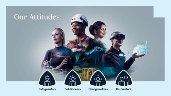 Our four Attitudes describe who we are, defining the behaviors we encourage and expect from each other. They were shaped by conversations with colleagues across all our segments. We explored our cultural legacy, identifying strengths to build on and behaviors to encourage. Our Attitudes honor our heritage as Safeguarders and Solutioneers, while emphasizing the need for everyone to also be Changemakers and Co-creators.